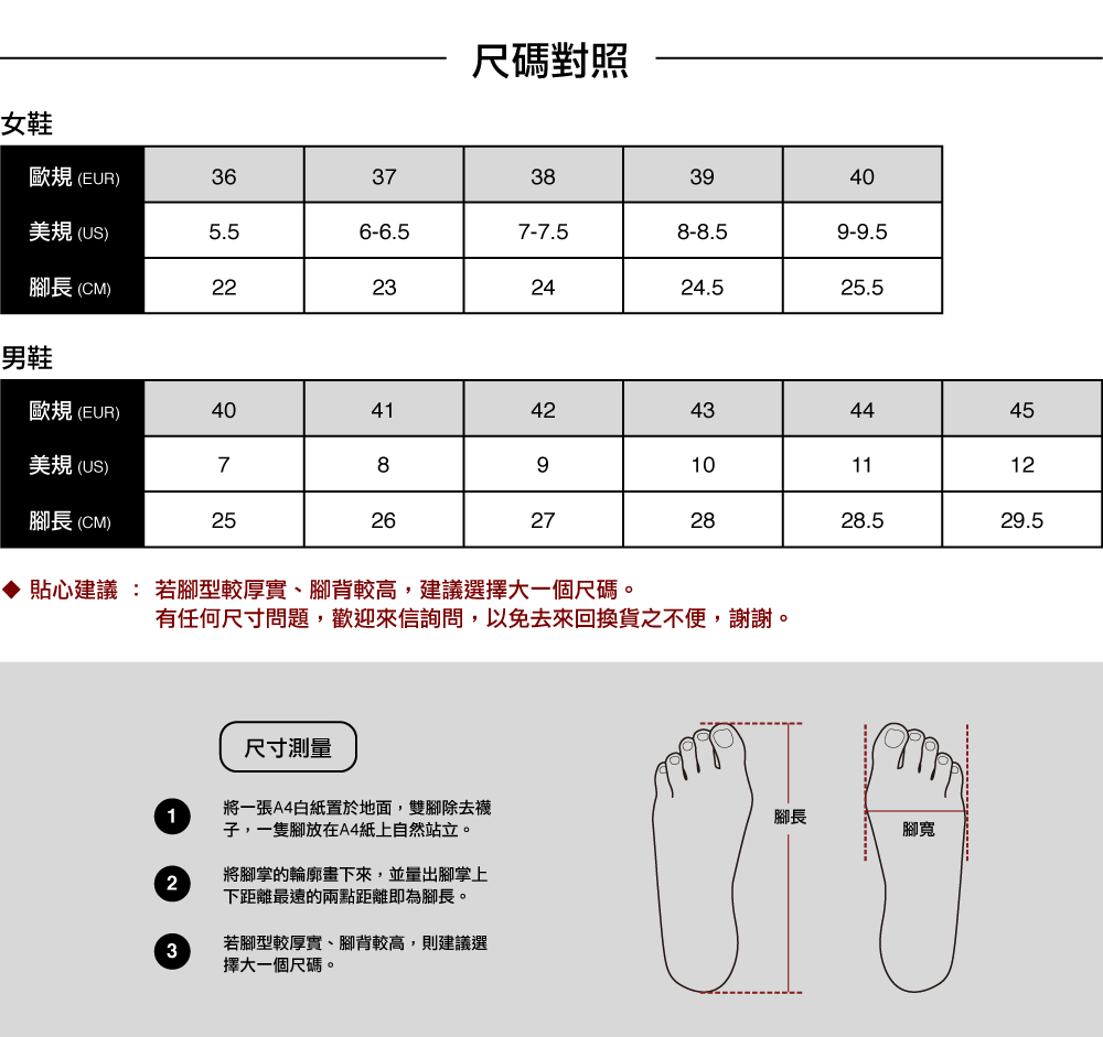 - 換貨商品須保持全新狀態,且換貨僅以更換尺寸為限,不得更換顏色或款式。